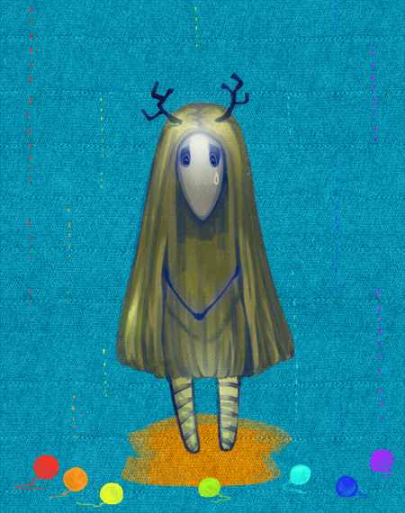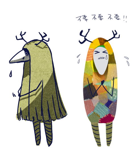 因為本體的拼布色太顯眼而拿毛線遮住。